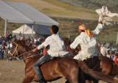 En esta salvaje carrera ecuestre de más de 800 años de antigüedad, los jinetes cabalgan a pelo, sin silla, para conseguir una muñeca de trapo confeccionada por las mujeres de la zona.